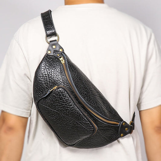 Herren Brusttasche Leder schwarz Bauchtasche Crossbody Tasche Sling Bag