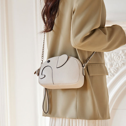 kleine Umhängetasche Elefant Leder mit Kette Clutch Handgelenkgurt Handytasche