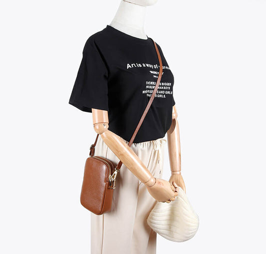Kleine Umhängetasche Damen Leder Handy Vintage Handytasche