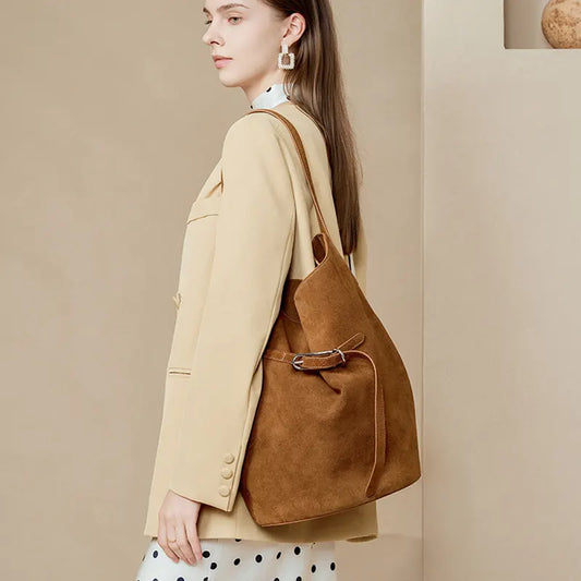 modische Schultertasche Damen Wildleder braun Handtasche Vintage