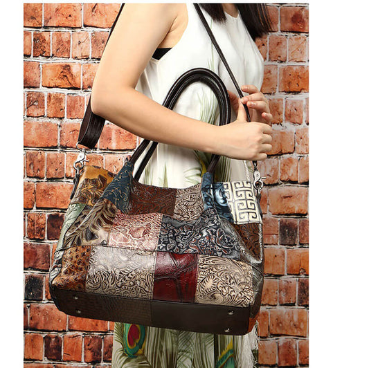 Patchwork Handtasche Damen bunte Schultertasche Leder