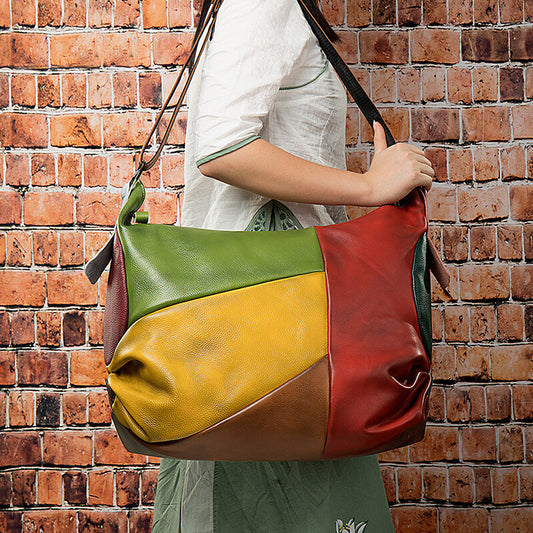 große Schultertasche Damen bunt Reisen Umhängetasche Ledertasche Patchwork