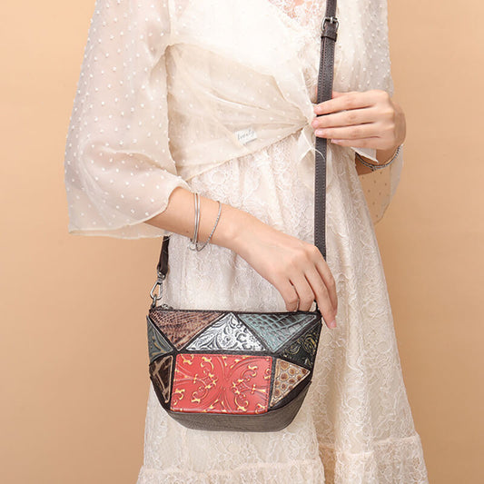 kleine Damen Schultertasche Leder bunte Unterarmtasche Patchwork Umhängetasche