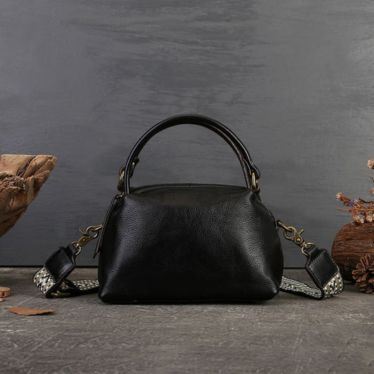 Handtasche Mittelgroß Damen leder Umhängetasche Vintage mit breitem Gurt