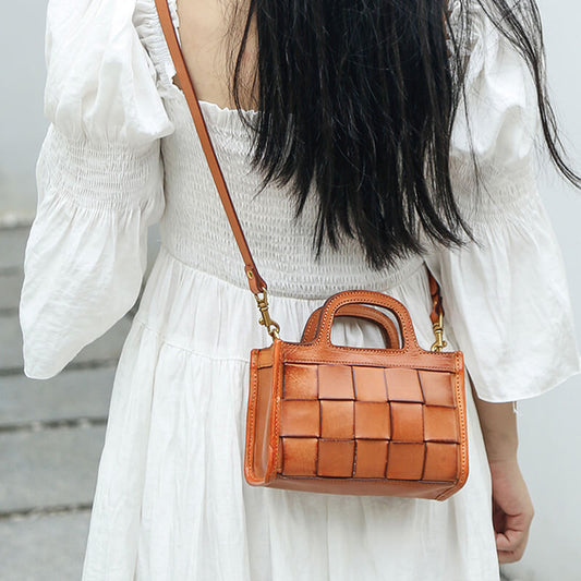 kleine Umhängetasche Damen geflochten Leder Vintage mit Henkel Handtasche