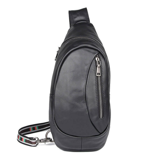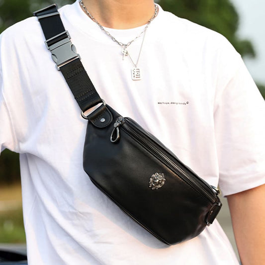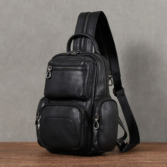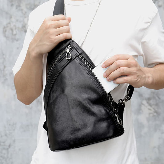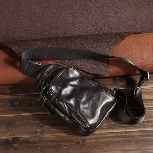 Herren Brusttasche Leder schwarz Bauchtasche Crossbody Tasche Sling Bag