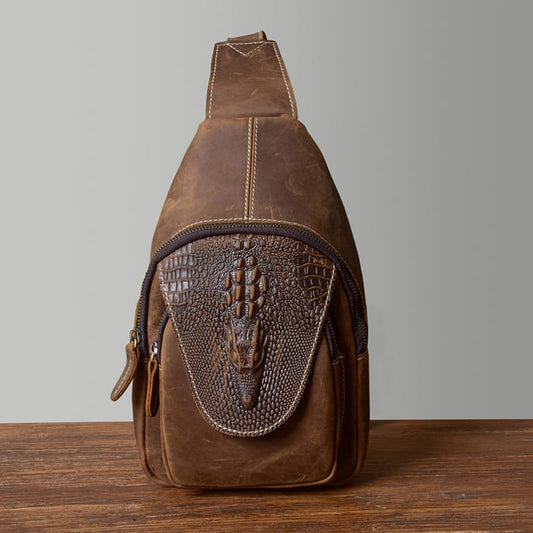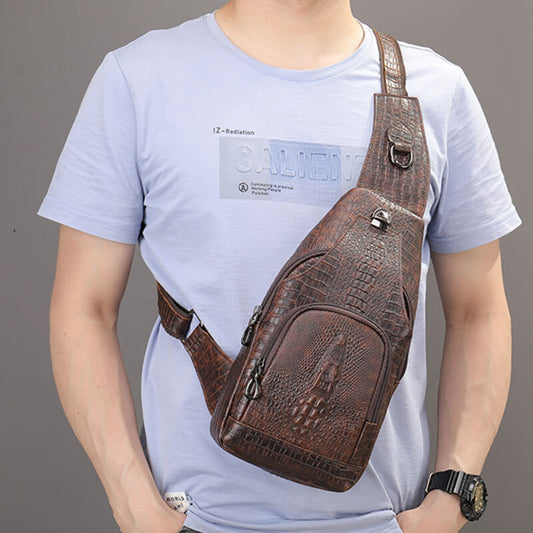 Herren Brusttasche Leder Krokodil Muster Sling Bag