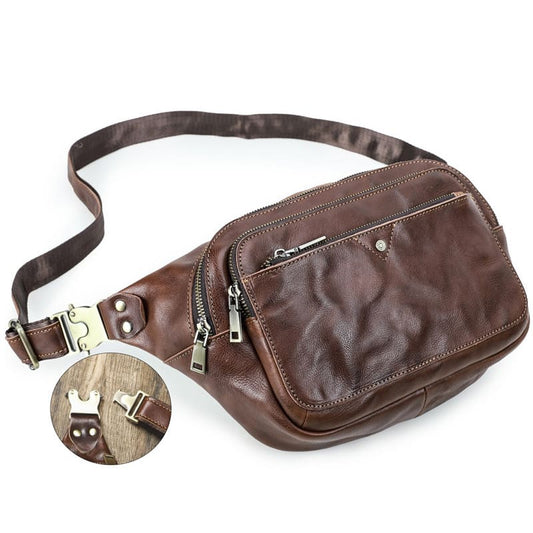 Brusttasche Herren Bauchtasche Hüfttasche Vintage Crazy Horse Leder Hip Bag