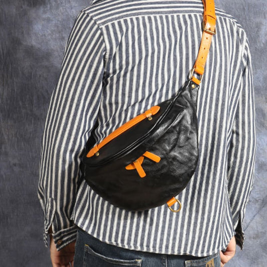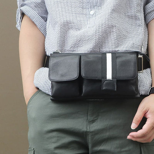 Hüfttasche Herren Leder Brusttasche Brusttasche modern schwarze Gürteltasche Clutch