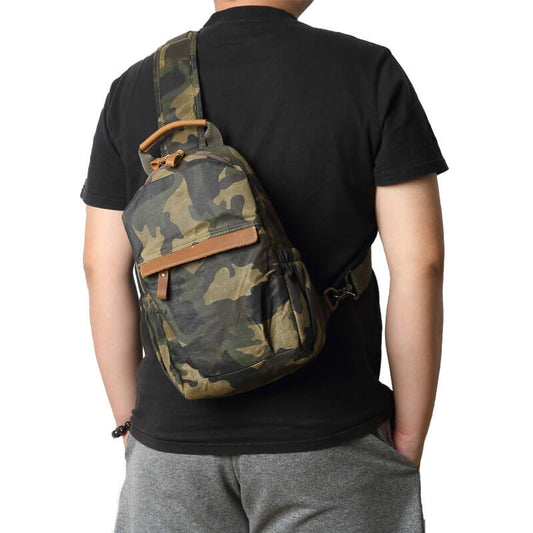 Camouflage Brustbeutel für Herren gewachstes Canvas Brusttasche Rucksack mit 1 Gurt