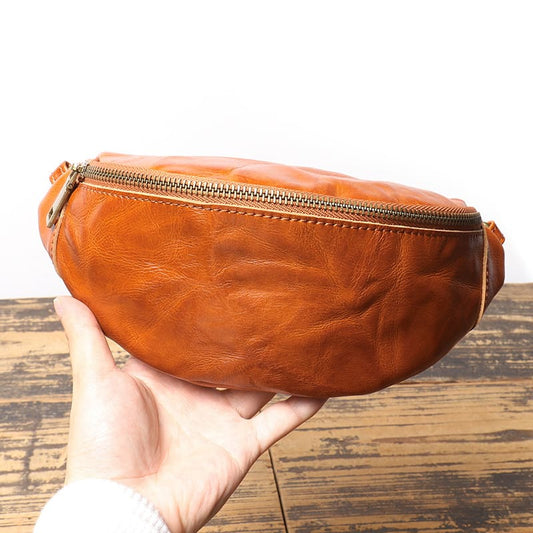 Brusttasche Herren Leder Vintage Umhängetasche Bauchtasche pflanzlich gegerbtes Leder Tasche