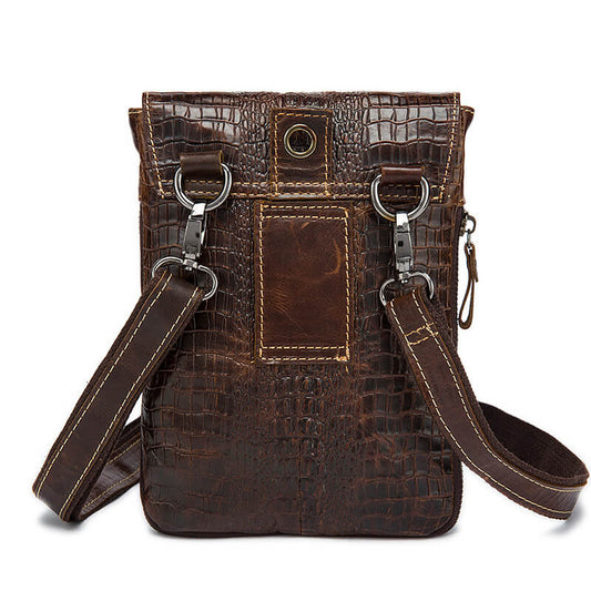kleine Umhängetasche Herren Leder Gürteltasche Kroko Optik Kaffeebraun