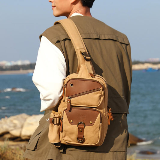 Eingurt Rucksack Herren Brusttasche Canvas Umhängetasche
