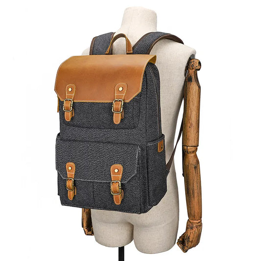 Herren Rucksack Canvas und Leder mit vielen Fächern für Uni
