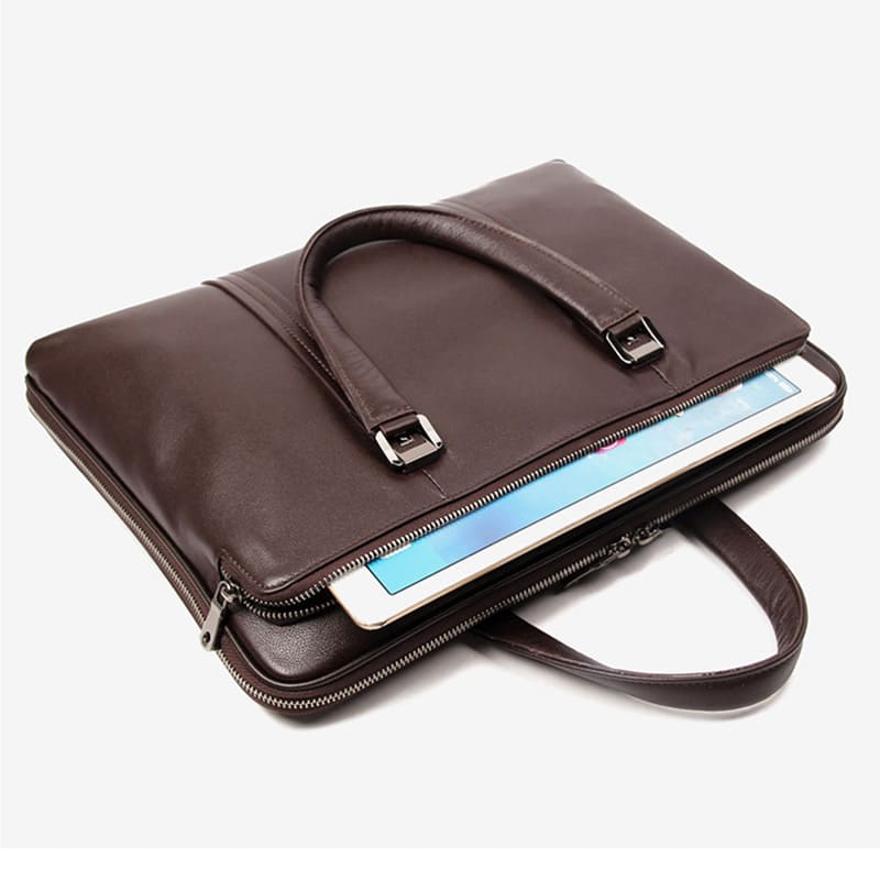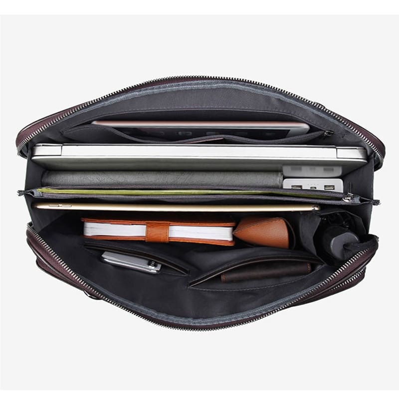 Hochwertiges Material – Ausdruck von Stil und Qualität: Diese Herren-Aktentasche ist aus echtem Leder gefertigt, das sich weich anfühlt, besonders strapazierfähig ist und durch seine feine Haptik den eleganten Charakter der Tasche unterstreicht. Das atmungsaktive Leder sorgt zudem für angenehmen Tragekomfort und eine lange Lebensdauer – perfekt für anspruchsvolle Geschäftsleute mit Stil.