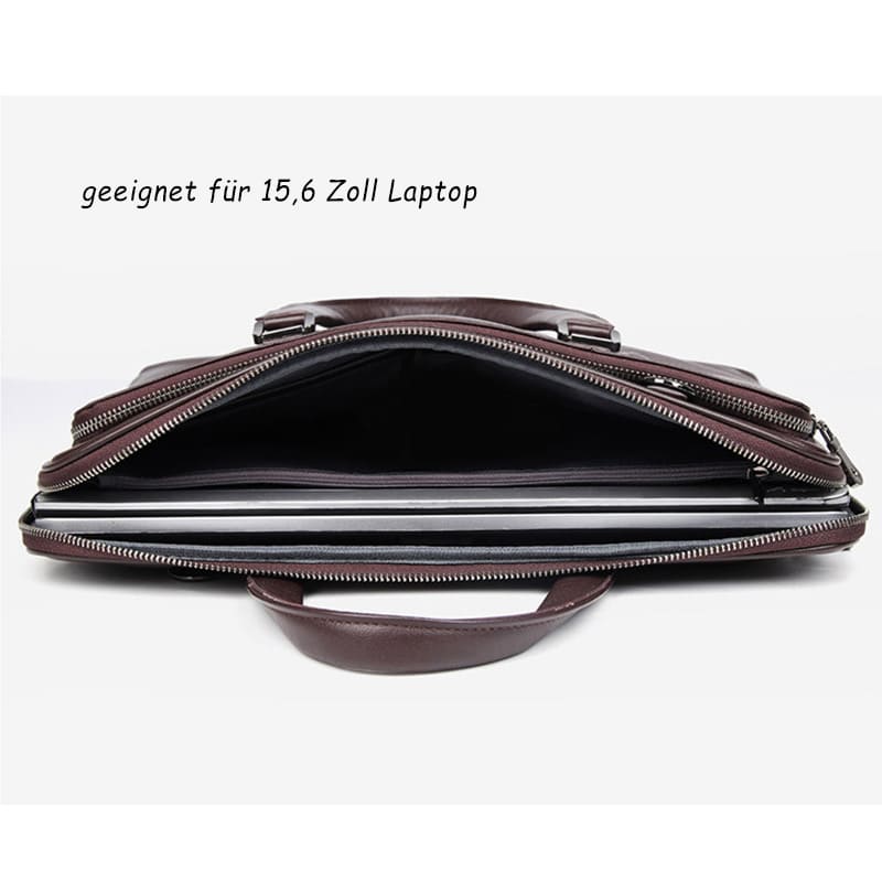 Businesstasche Herren Leder Umhängetasche Aktentasche mit Reißverschluss