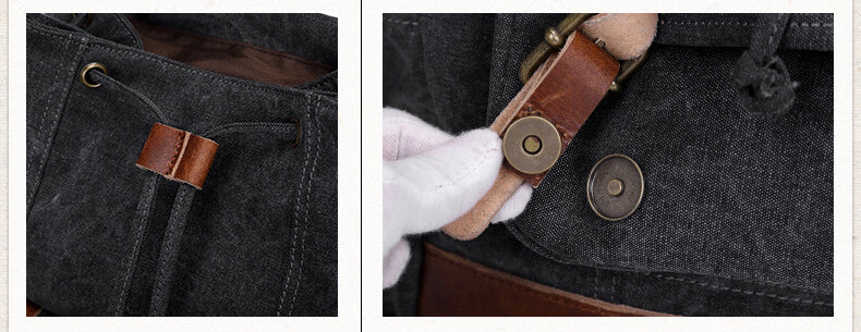 Canvas Rucksack Kordelzug Backpack Herren Segeltuch Laptoptasche für Schule