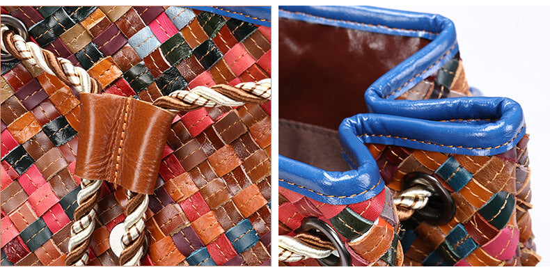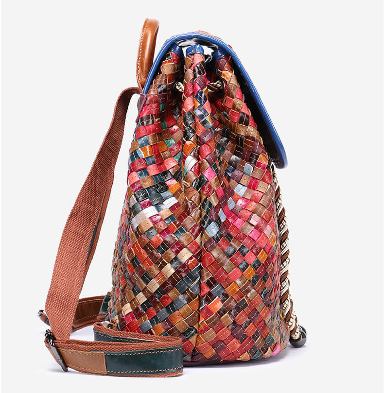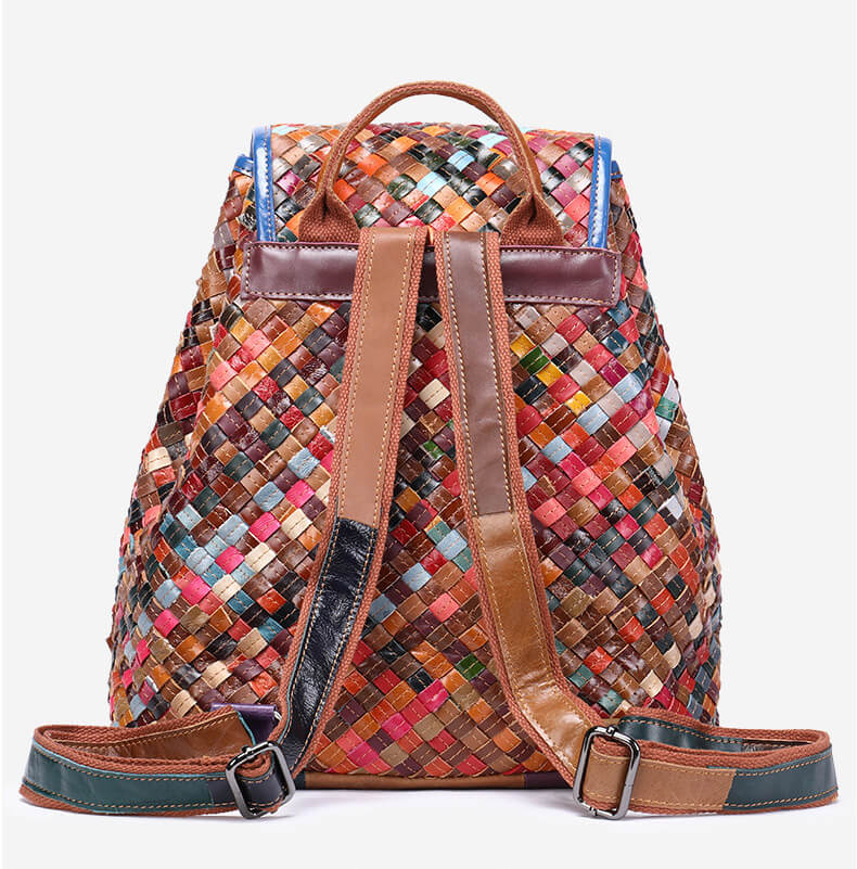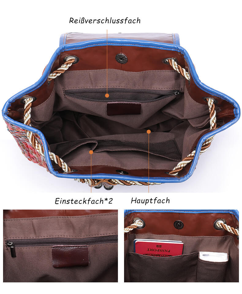 Wichtig: Der Rucksack Stil Gefolchten besteht aus geflochtenem Leder, und der Rucksack Stil Blumen besteht aus gespleißtem Leder, so dass jeder Rucksack den Farbunterschied zeigt. Jeder Rucksack gibt Ihnen eine Überraschung.