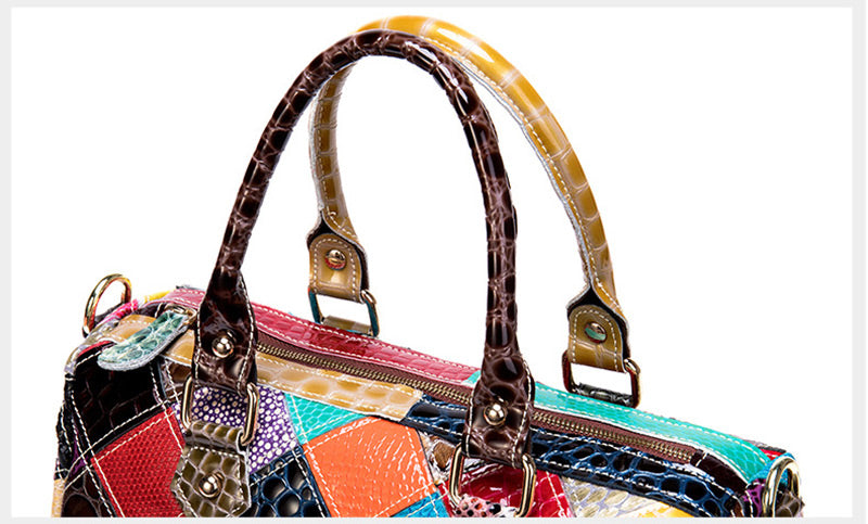 Damen Handtasche Leder bunt Umhängetasche Patchwork