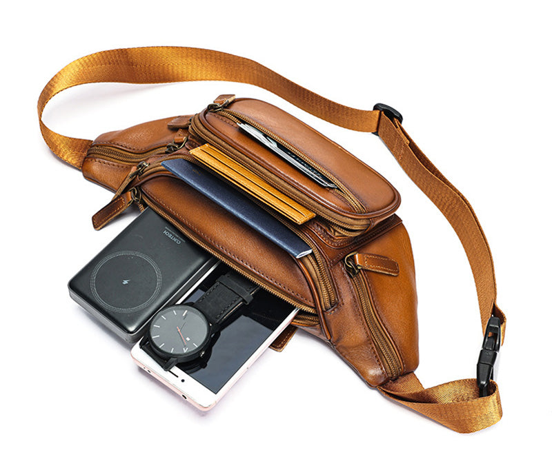 Damen Hüfttasche Leder Vintage Bauchtasche Brusttasche braun