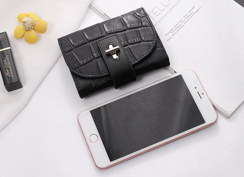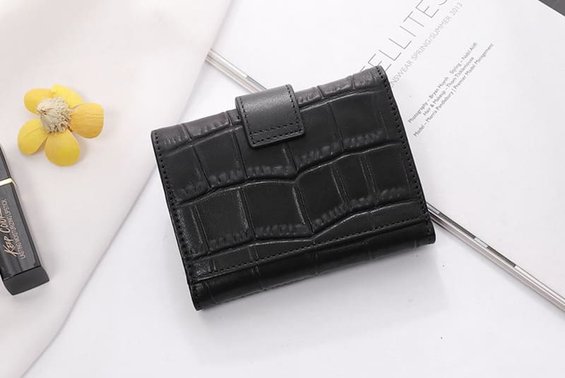 Damen Leder Geldbörse schwarz Portemonnaie klein mit Kartenfächern Kroko Optik