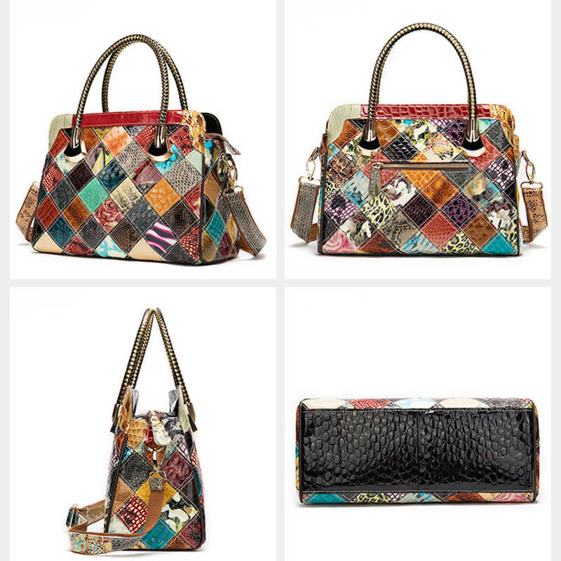 Damen Patchwork Handtasche bunt mit Lackleder zum Umhängen