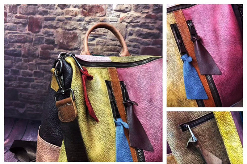 Damen Rucksack bunt Leder Patchwork Schultertasche 2 in 1 für Alltag