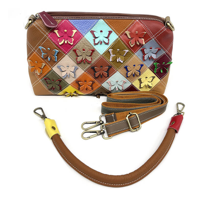 Damen Schultertasche bunt Leder Umhängetasche Schmetterling mit 2 Riemen