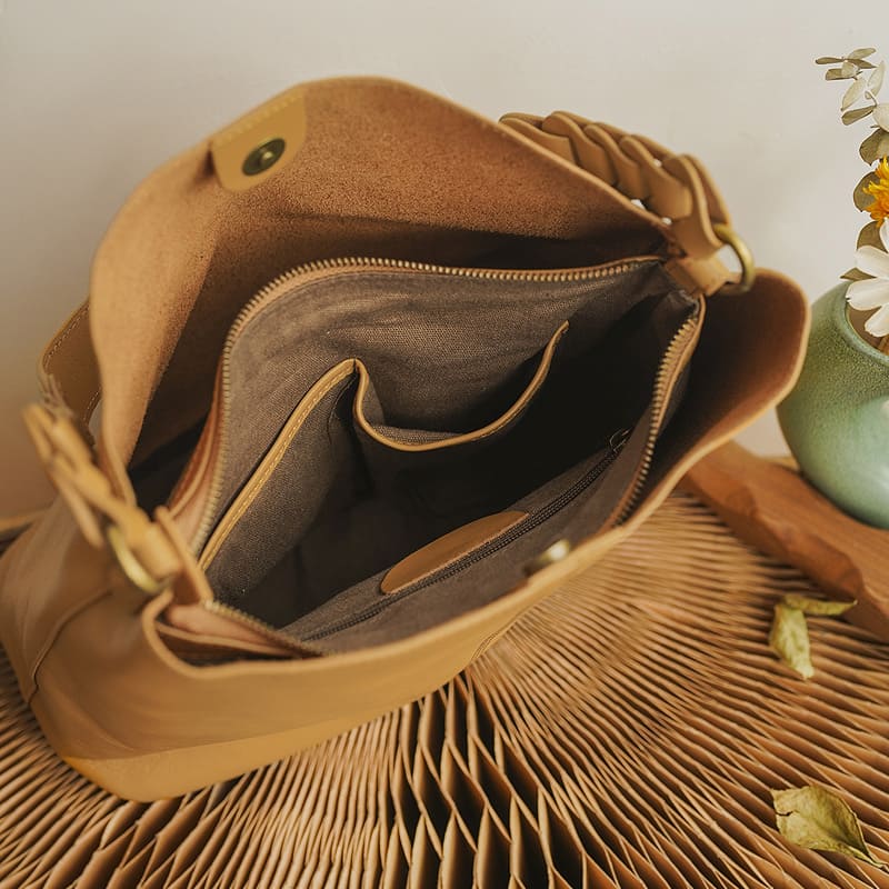 Zusammenfassend lässt sich sagen, dass diese pflanzlich gegerbte Leder-Schultertasche mit ihrem einzigartigen Material, durchdachten Design und praktischen Funktionen die ideale Wahl für die moderne Frau im Alltag darstellt.