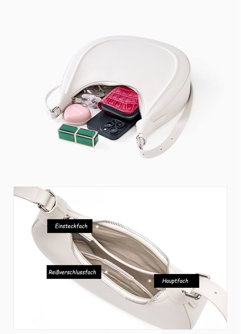 Vielseitige Tragemöglichkeiten: Mit einem verstellbaren Riemen können Sie die Tasche je nach Vorliebe und Anlass als Schultertasche oder Unterarmtasche tragen, was eine flexible Nutzung ermöglicht.