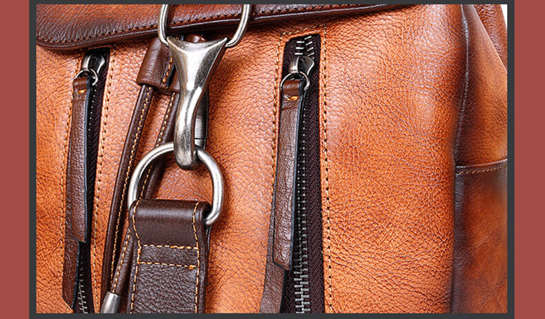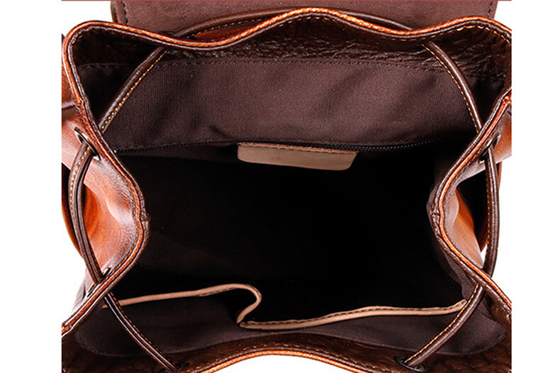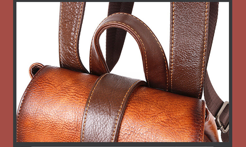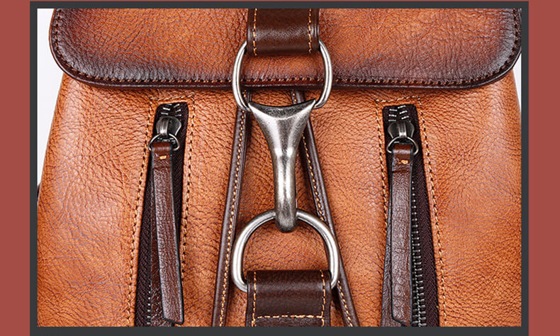 Dieser Damen-Retro-Rucksack ist mit seinem einzigartigen Charme und exquisiter Handwerkskunst die perfekte Verbindung von Stil und Funktionalität. Er besteht aus hochwertigem, echtem Leder, das sorgfältig geschliffen und behandelt wurde, um einen eleganten Glanz zu zeigen, der die Spuren der Zeit widerspiegelt. Die Oberfläche fühlt sich sanft und hochwertig an.