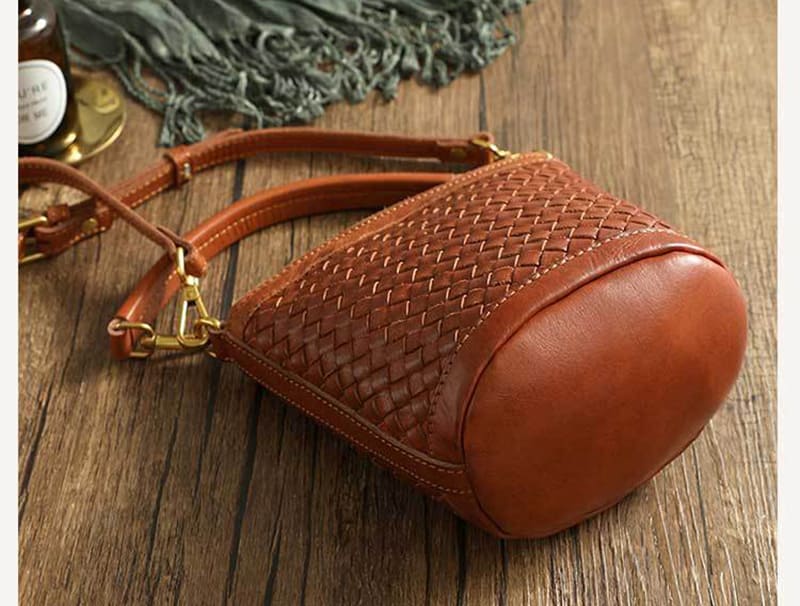 Eimer Tasche kleine Damen Umhängetasche geflochtene leder Ledertasche Handtasche