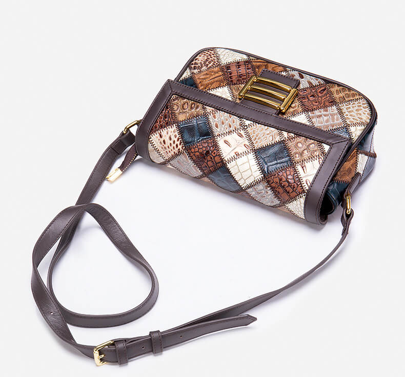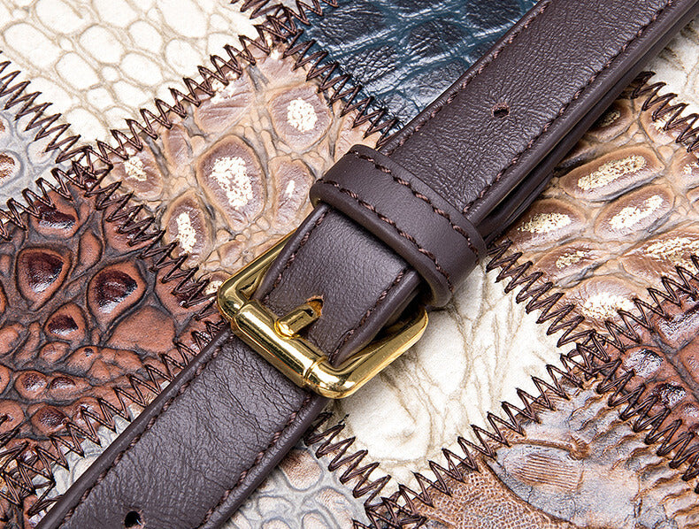 Einzigartiges Design: Diese Damen-Umhängetasche besteht aus verschiedenen farbigen und gemusterten Lederstücken, die zufällig zusammengesetzt sind. Jede Tasche hat ein einzigartiges Aussehen und hebt Ihren individuellen Geschmack hervor.