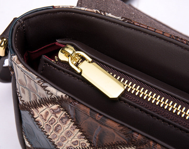 Elegante Vintage Damen Umhängetasche Patchwork Leder bunt