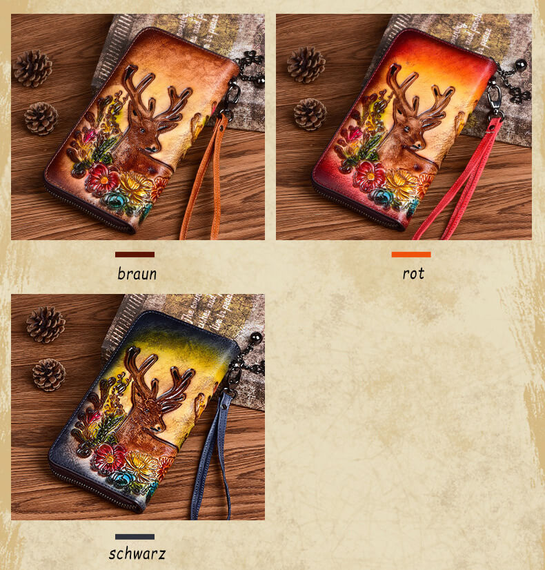 Geldbörse Damen Leder lang ausgefallene Portemonnaie Vintage mit Hirsch