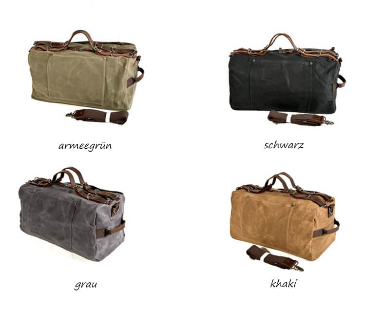 Modische Farbvielfalt für jeden Stil: Erhältlich in vier stilvollen Farben – Armeegrün, Schwarz, Grau und Khaki – bietet diese Reisetasche für jeden Geschmack das passende Modell. Ob Sie es lieber klassisch-dezent oder modern und ausdrucksstark mögen, hier finden Sie garantiert Ihren Favoriten.