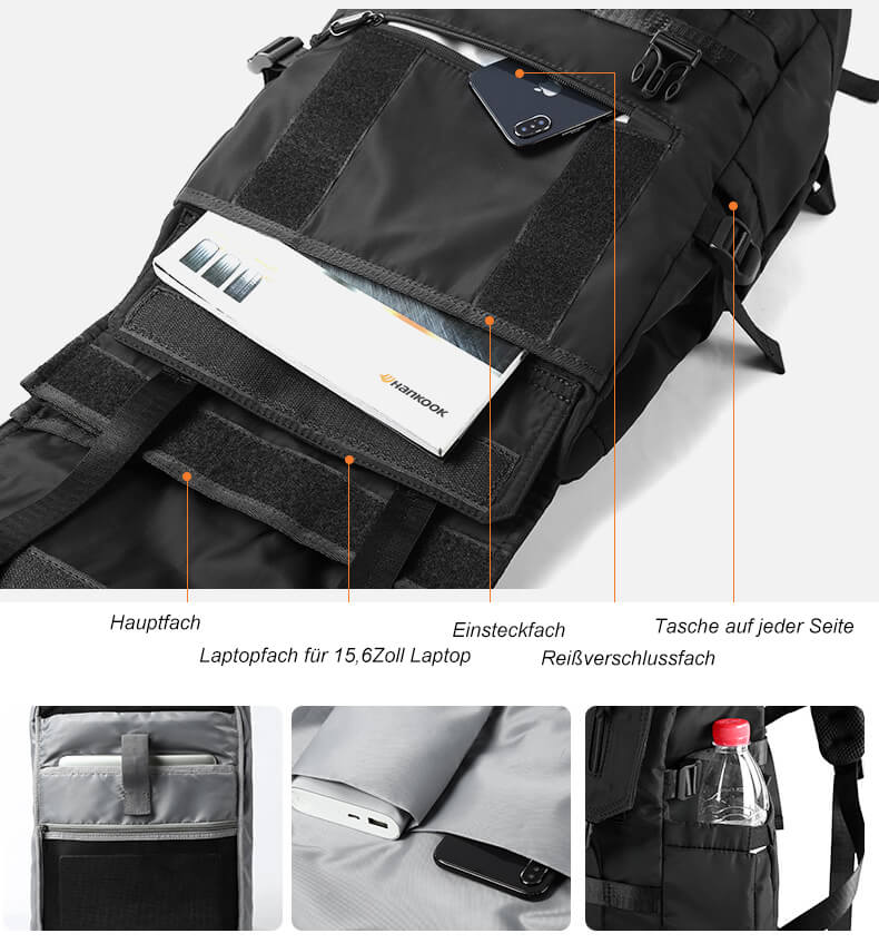 Einsatzmöglichkeiten: Mit seiner wasserabweisenden und strapazierfähigen Beschaffenheit sowie dem großzügigen Fassungsvermögen ist dieser Rucksack der ideale Begleiter für Reisen, kurze Geschäftsreisen oder den täglichen Gebrauch.