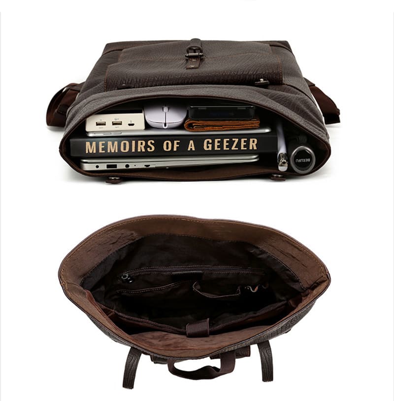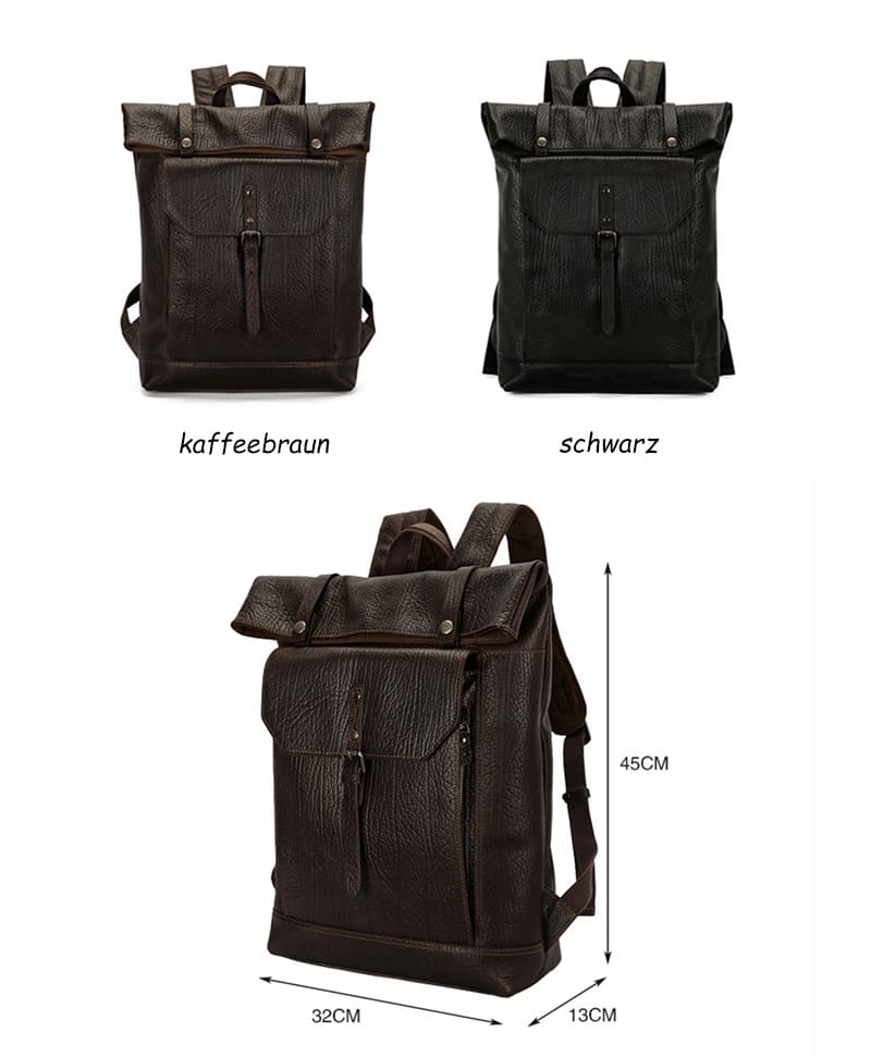 Herren Rucksack Leder Arbeit mit Rolltop und Polster Laptoprucksack