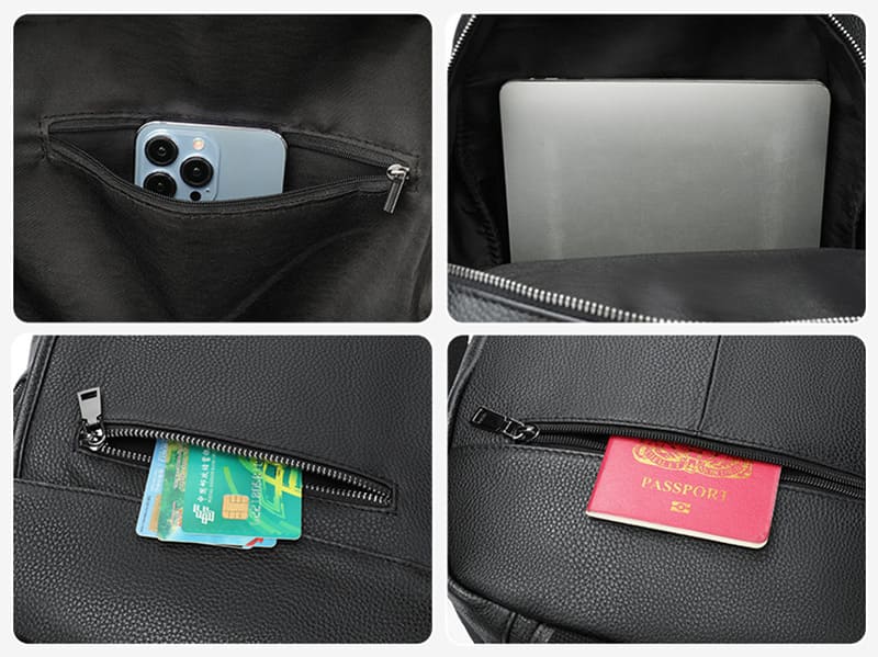 Perfekte Details: Die Rückseite verfügt über ein speziell gestaltetes Reißverschlussfach für persönliche Gegenstände, wodurch der Rucksack ordentlich und aufgeräumt bleibt. Das minimalistische, stilvolle Design macht ihn ideal für den täglichen Gebrauch, Reisen oder geschäftliche Anlässe.