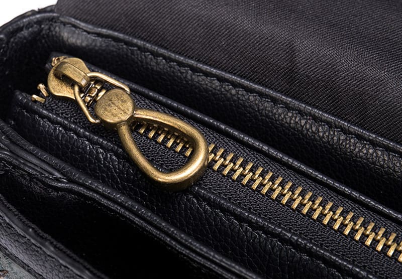 Sicherer Hauptfachverschluss: Das Hauptfach ist mit einer Taschenklappe und einem Reißverschluss ausgestattet, sodass Ihre Wertsachen wie Handy, Geldbörse und Schlüssel sicher aufbewahrt werden.