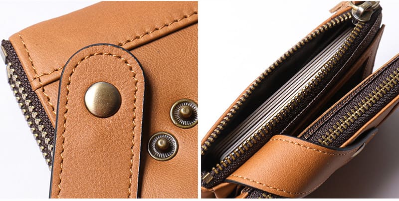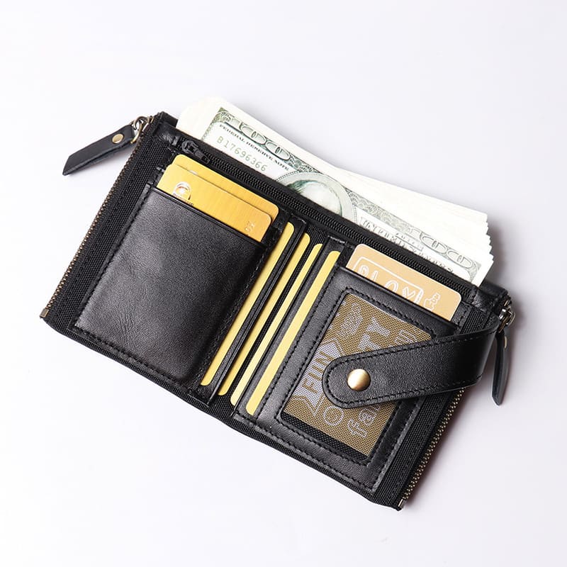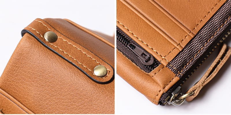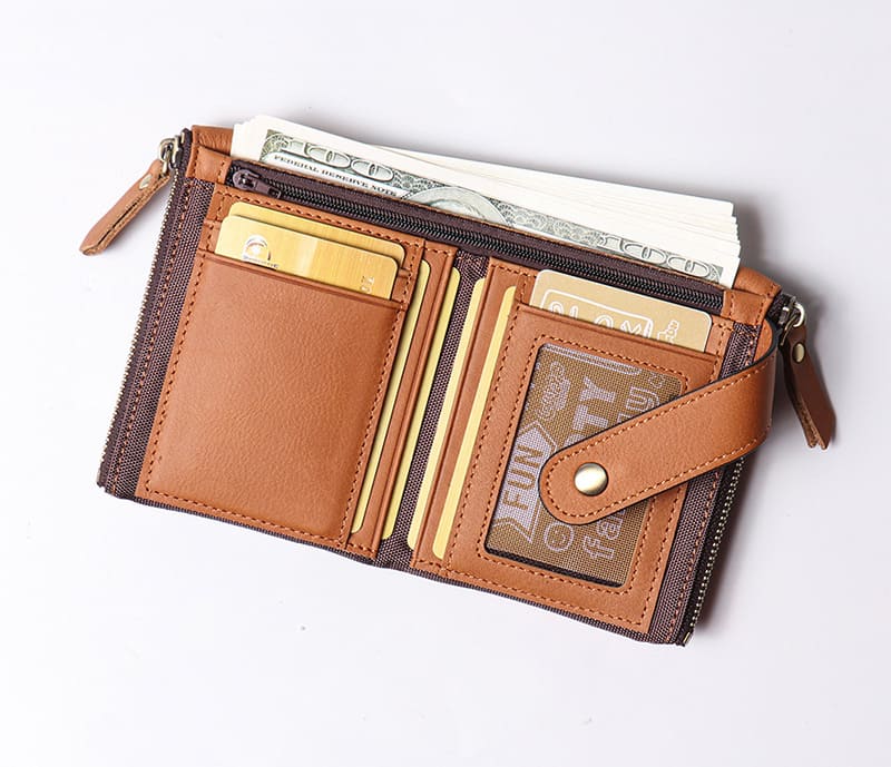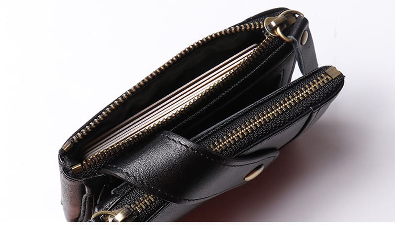 Multifunktionales Design – durchdachte Aufteilung: Im Inneren bietet die Börse 6 Kartenfächer, 1 großes Scheinfach, 3 Reißverschlussfächer für Münzen oder Belege sowie ein transparentes Fotofach – ideal zum Verstauen eines Lieblingsfotos. Auf der Rückseite befinden sich zwei zusätzliche Kartensteckplätze für seltener genutzte Karten – alles hat seinen Platz.