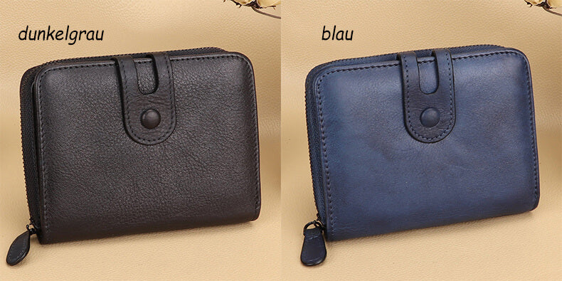 kleine Leder Geldbörse Vintage Damen mit Reißverschluss Portemonnee schlicht