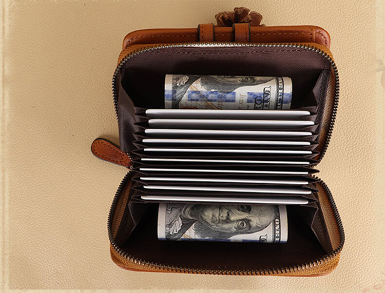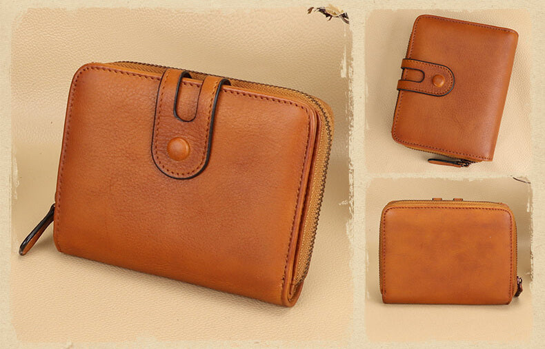 Retro-Lederdesign: Dieses Damenportemonnaie besteht aus hochwertigem Leder, das sich weich und zart anfühlt, langlebig und widerstandsfähig ist und eine nostalgische, elegante Ausstrahlung bietet, die den einzigartigen Geschmack der Trägerin unterstreicht.