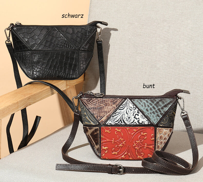 Bunte Patchwork-Design: Diese Damen-Umhängetasche besteht aus zufällig farbigen Lederstücken, die sicherstellen, dass jede Tasche ein einzigartiges Kunstwerk ist und Ihre individuelle Persönlichkeit zum Ausdruck bringt.