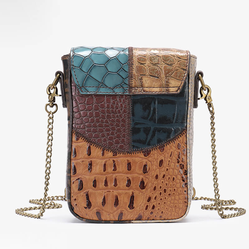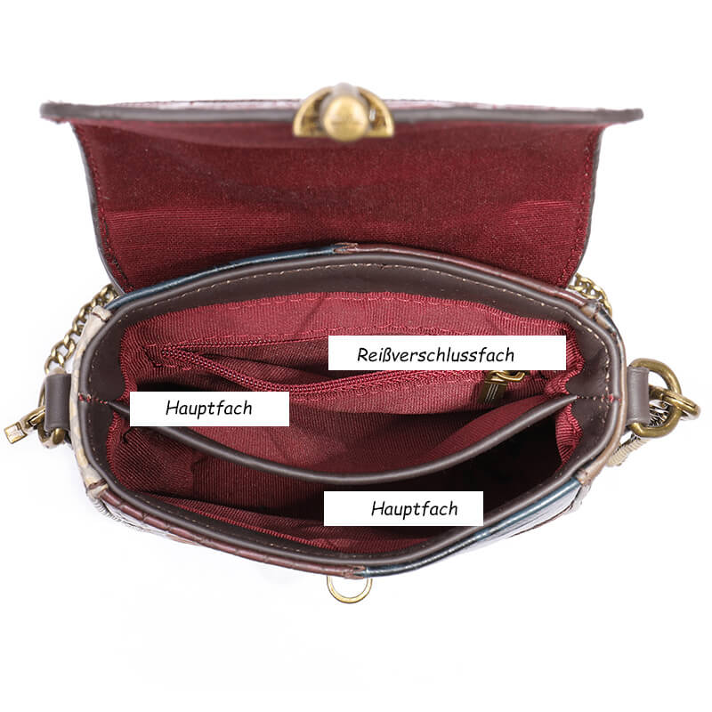 kleine Patchwork Umhängetasche Damen Leder Handytasche Vintage bunt mit Kette