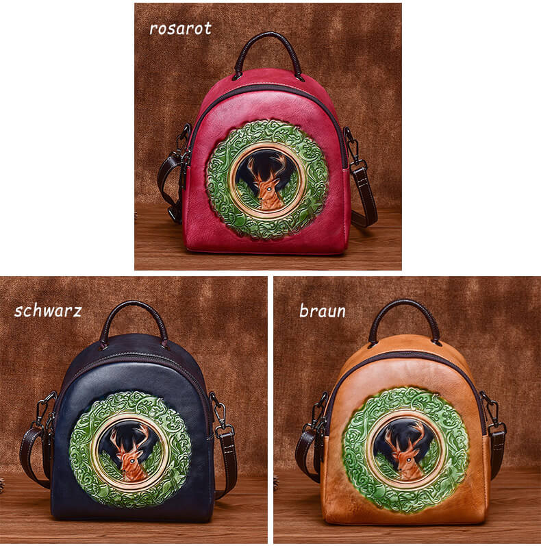 kleiner Rucksack Damen Leder Schultertasche 2in1 mit Hirschmotiv