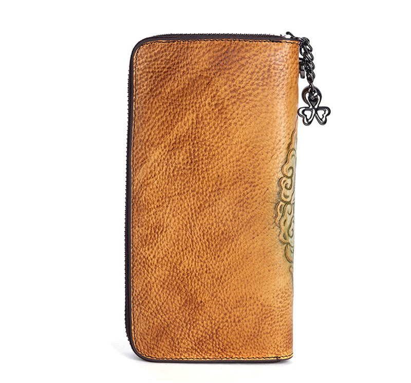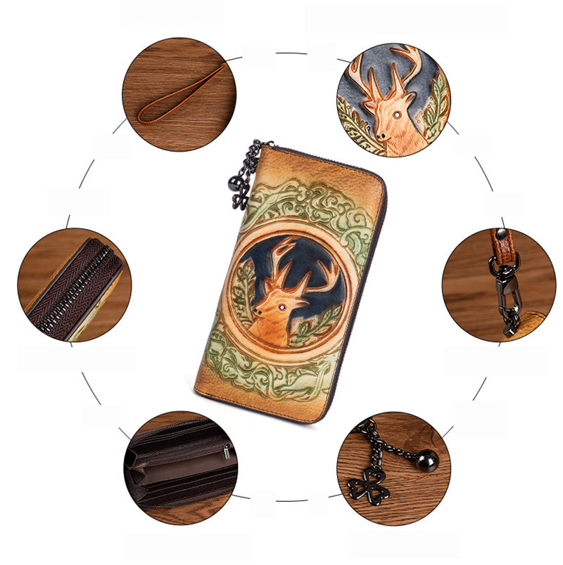 lange Geldbörse Damen Vintage Portemonnaie aus Leder mit Hirsch