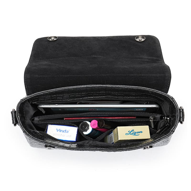 Leder Damen Umhängetasche Schultertasche schwarz Krokodil Muster Kette