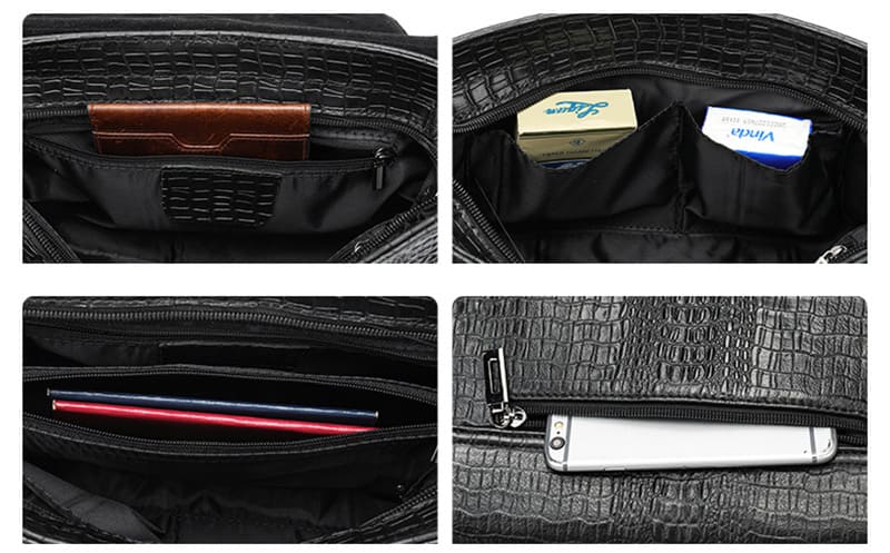 Multifunktionale Innenstruktur: Im Inneren befinden sich zwei Reißverschlussfächer und zwei Einsteckfächer sowie ein Reißverschlussfach auf der Rückseite. Die clevere Aufteilung ermöglicht es, Ihre Dinge nach Kategorien zu verstauen, sorgt für Ordnung und erleichtert den schnellen Zugriff.