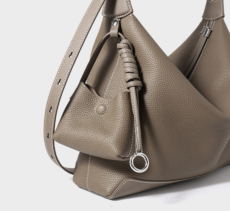 Einzigartiges äußeres Mini-Täschchen: An der Außenseite ist ein abnehmbare Mini-Tasche angebracht, das sich ideal zum Aufbewahren kleiner Gegenstände wie Lippenstift oder Schlüssel eignet. Es erhöht nicht nur die Alltagstauglichkeit, sondern dient zugleich als modisches Accessoire, das dem Gesamtlook einen besonderen Akzent verleiht – eine perfekte Kombination aus Stil und Funktionalität.